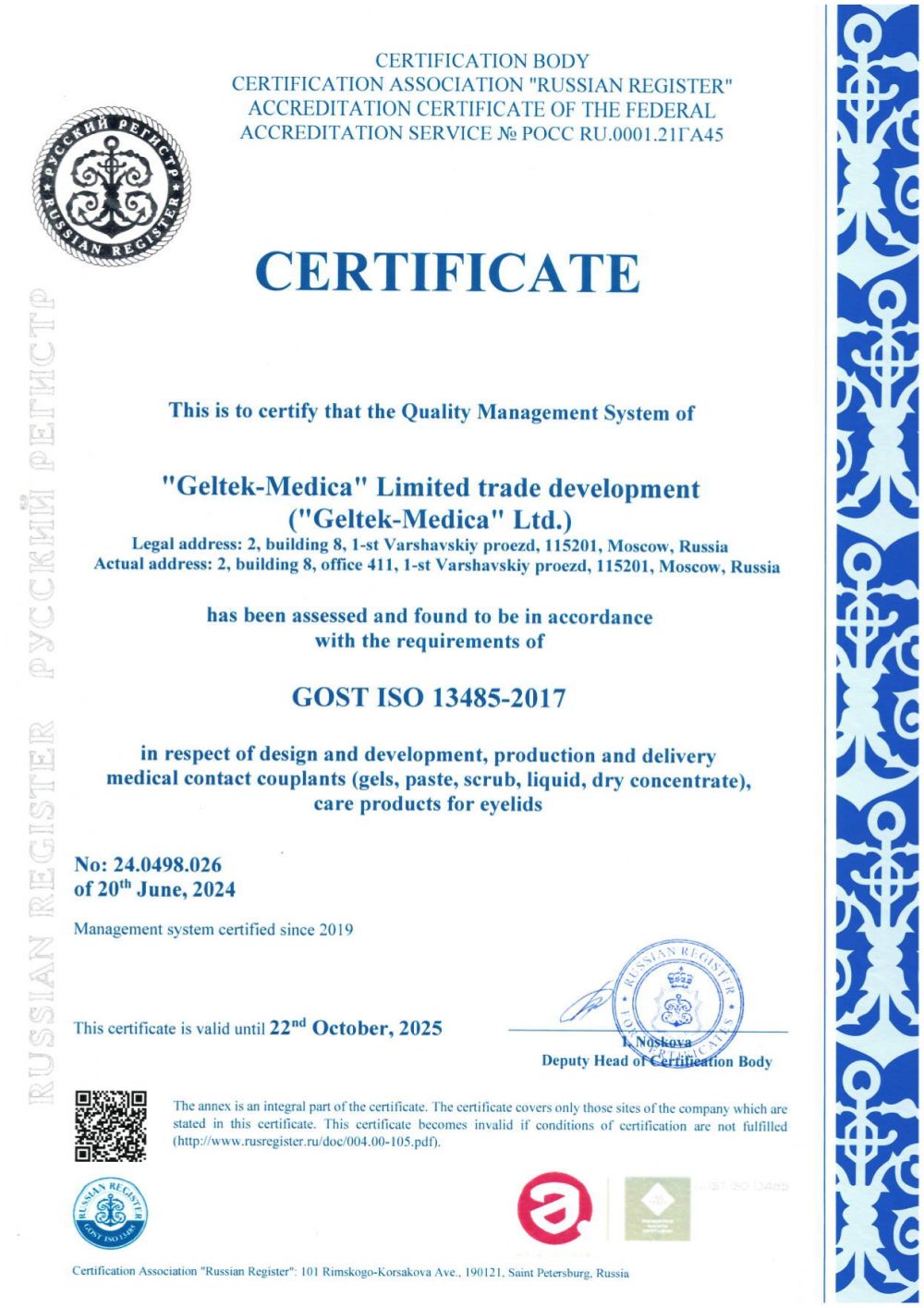 Сертификат ГОСТ ISO 13485 (rus)(стр. 1)